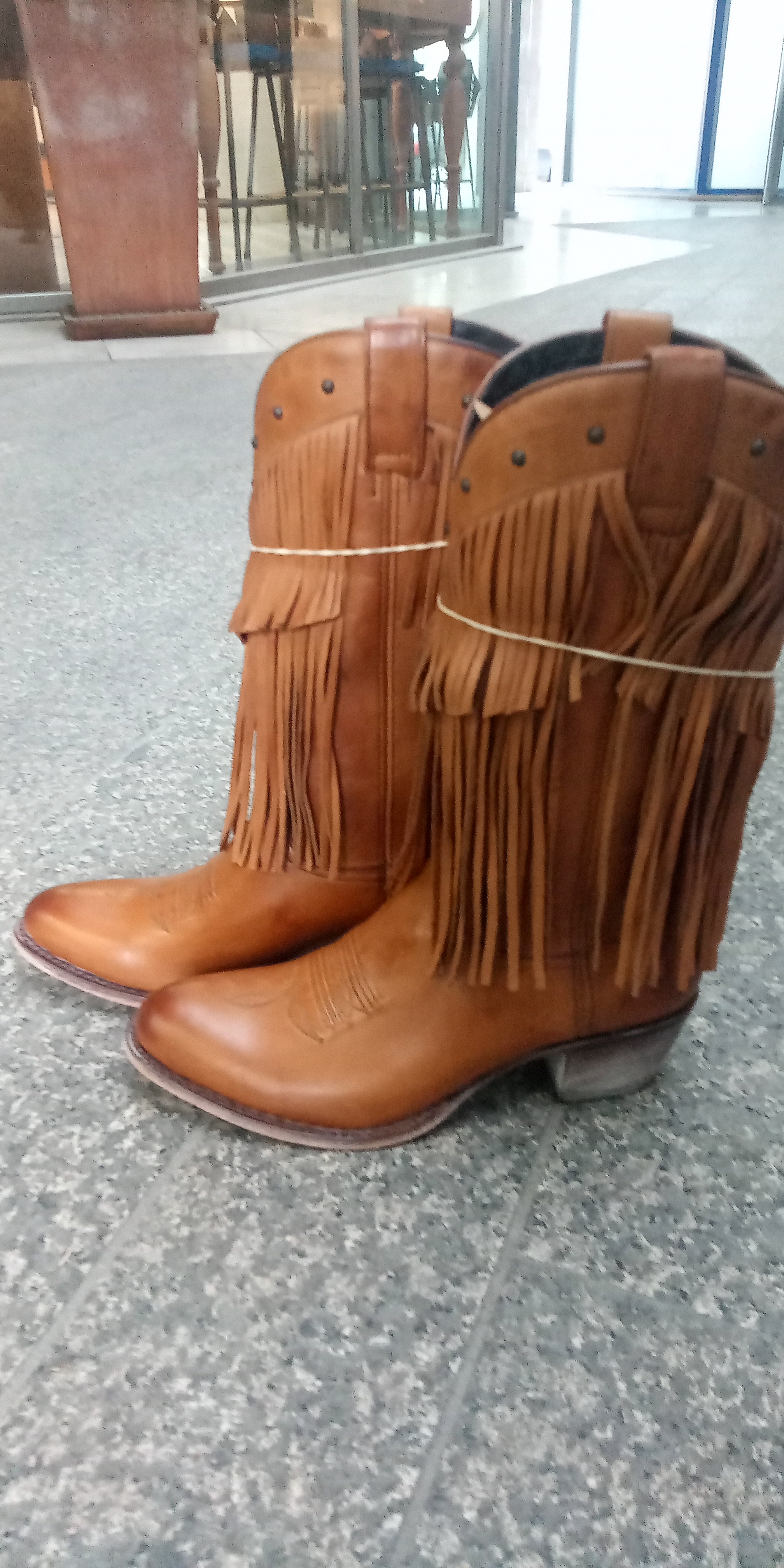 SENDRAειροποίητη καουμπόικη δερμάτινη γυναικεία μπότα με οβαλ μύτη τακούνι και κρόσσια..