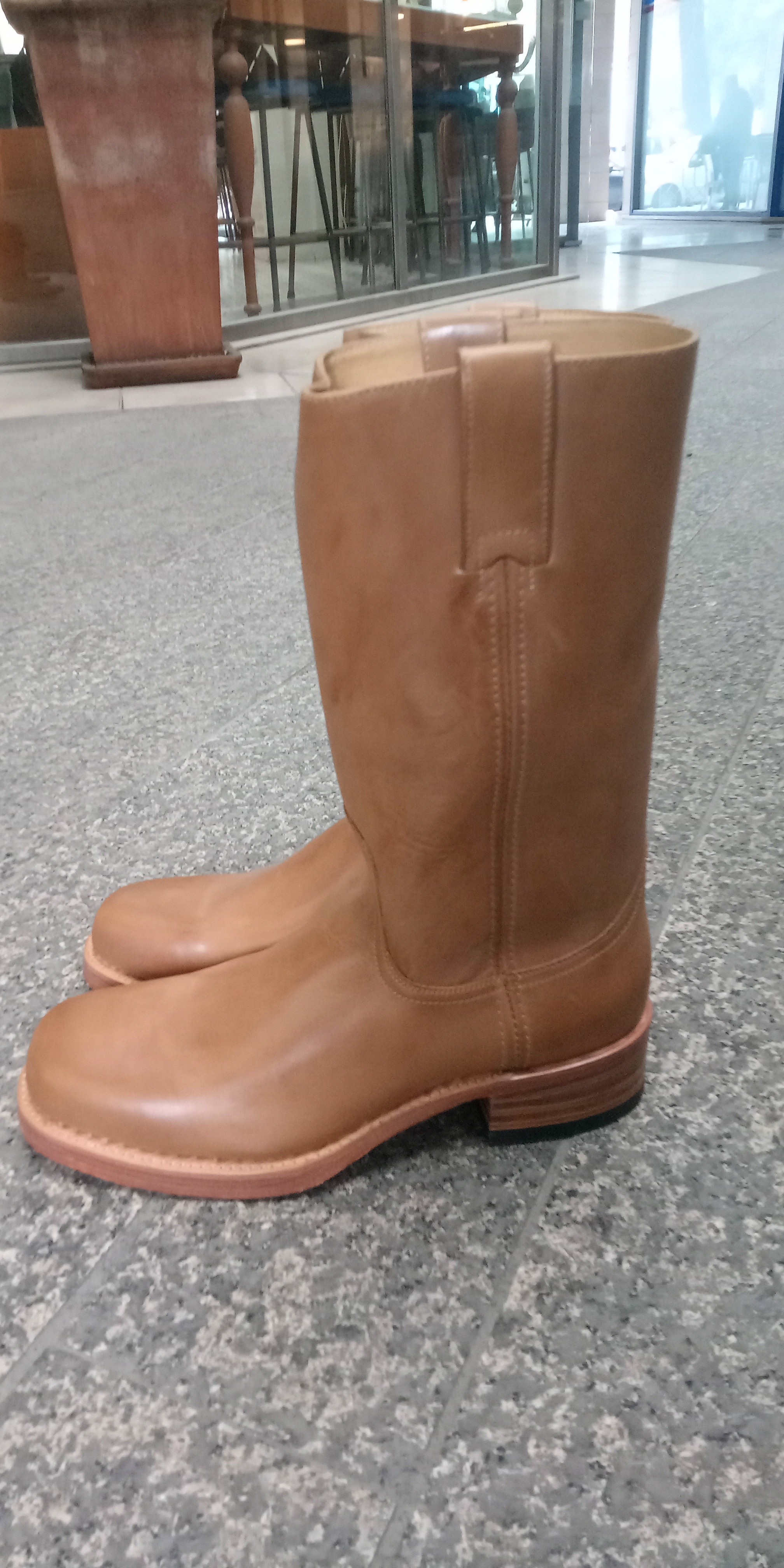 SENDRA χειροποίητη μηχανής δερμάτινη μπότα με ισιο τακούνι σταθερό.